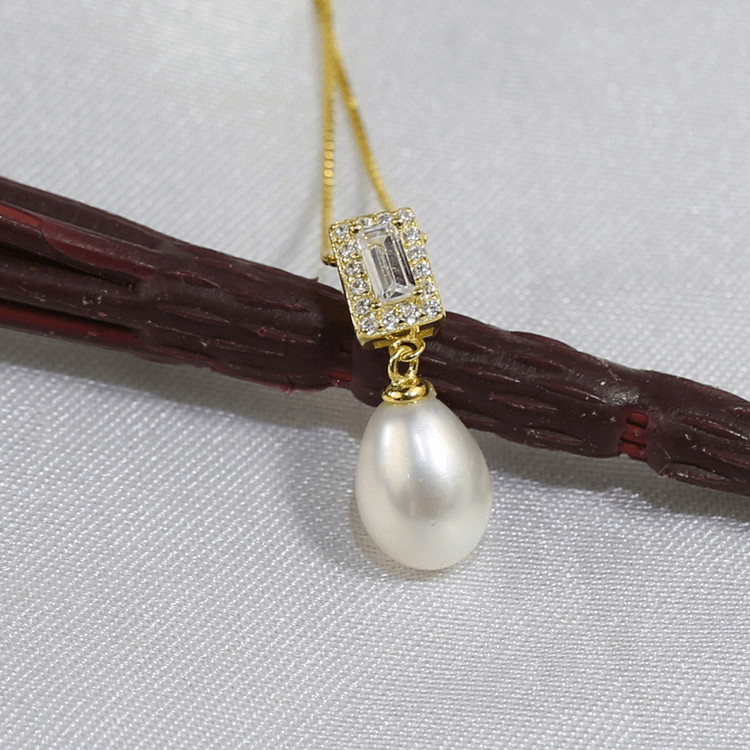 La perla de agua dulce es el elemento central del colgante.La base de la joya está hecha de plata, que ha sido recubierta con una capa de oro para brindarle un acabado dorado brillante y duradero.