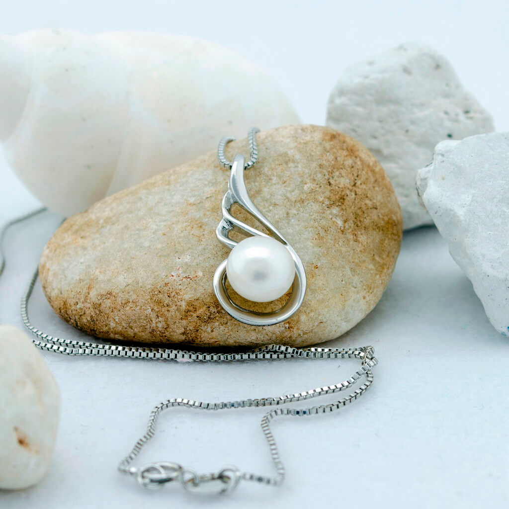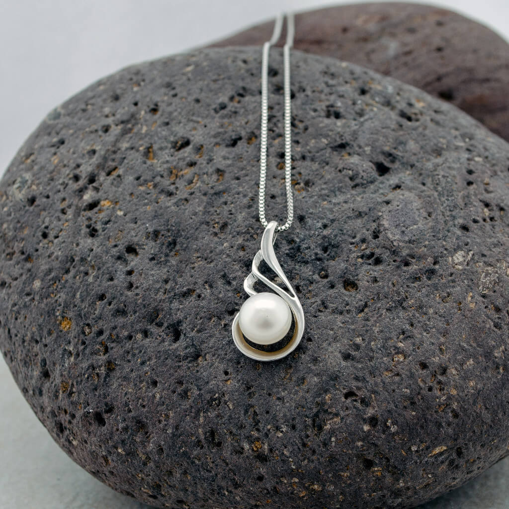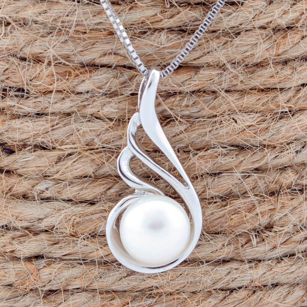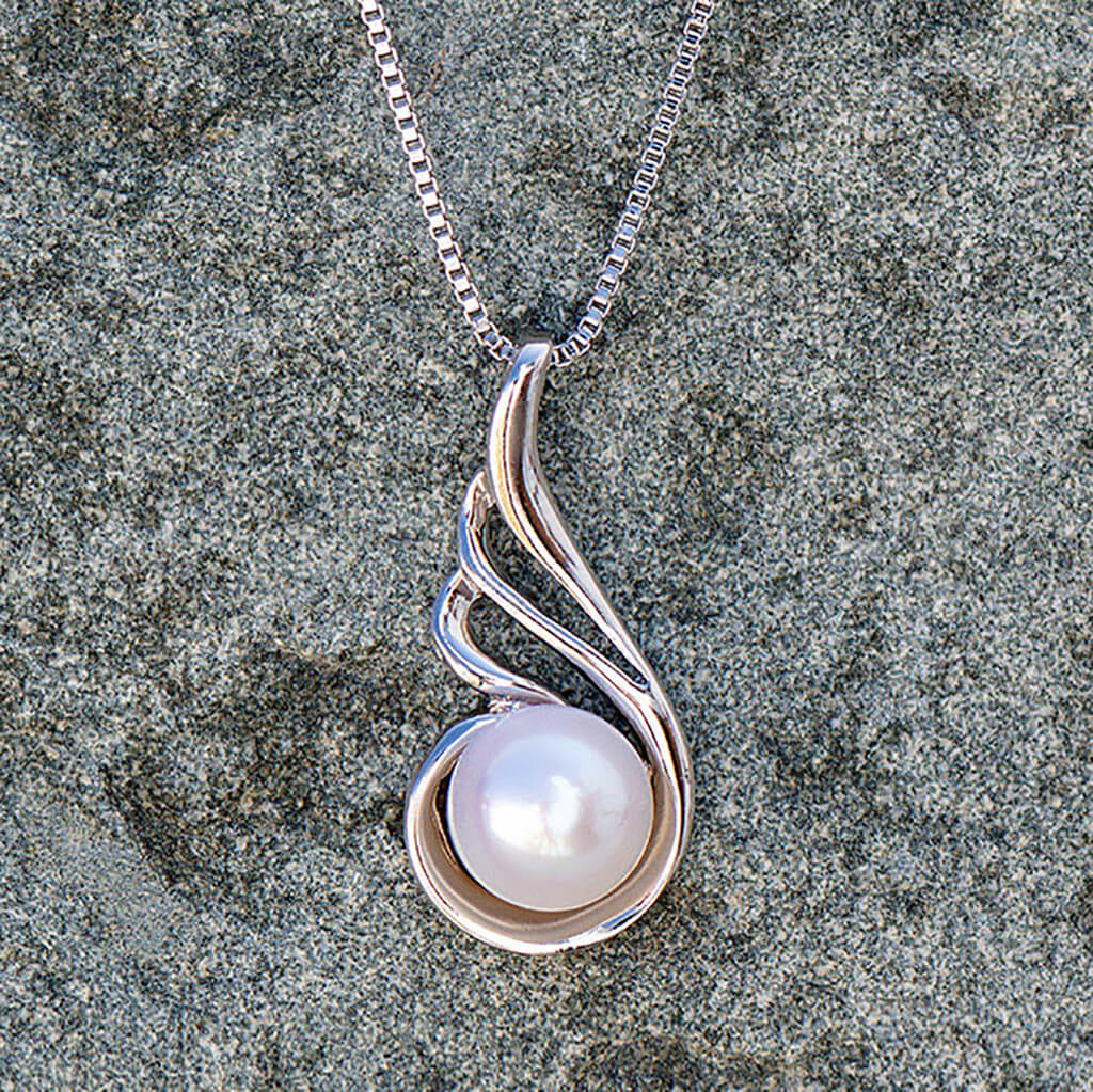 Colgante de perla de agua dulce y plata de ley con diseño muy diferente